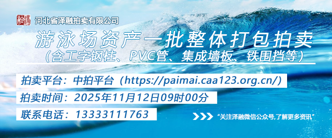 [拍卖公告]游泳场资产一批(含工字钢柱、pvc管、集成墙板、铁围挡等)整体打包拍卖20251112